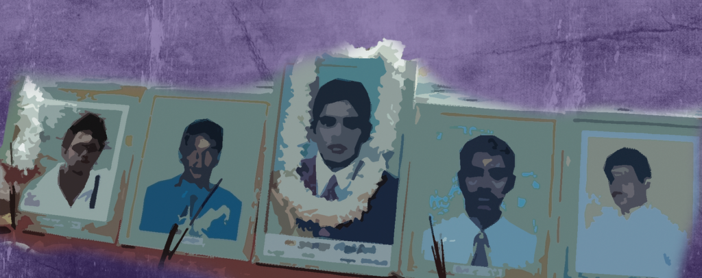 When he opened the door, the first body he saw was his son Ragihar’s, with five gunshot wounds visible. A police officer immediately demanded that he sign a statement claiming Ragihar belonged to the LTTE. In exchange, they’d release the body.